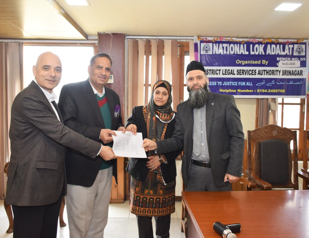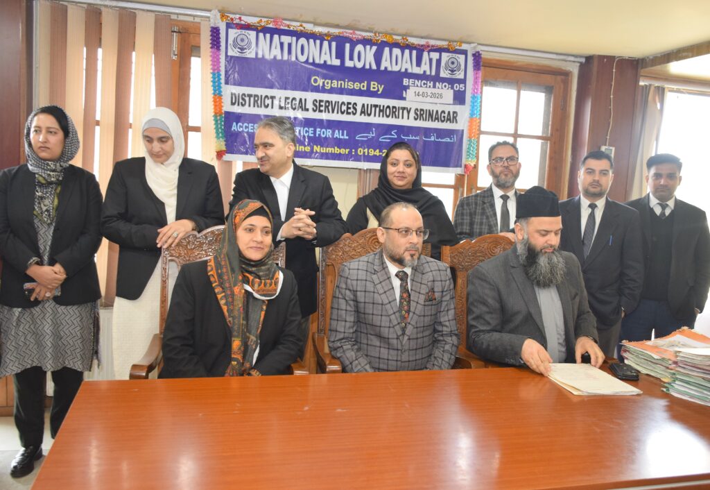 Srinagar, March 14 2026: (JKNN ) In a significant stride towards delivering timely and amicable justice, , District Legal Services Authority (DLSA) in collaboration with the District Judiciary Srinagar successfully organized the Ist National Lok Adalat of the year 2026 at the District Court Complex Mominabad, Srinagar, and at the Court of the Additional Special Mobile Magistrate/JMIC Panthachowk.